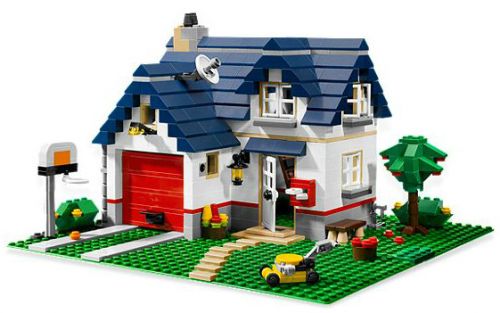 This modern country home with an apple tree outside is full of fun and realistic details, including a working mail box with letters inside, a satellite dish on the roof, a basketball net and lawnmower, opening front and garage doors, a ladder up to the attic and more! Includes 3-in-1 instructions for rebuilding into a tall townhouse or a relaxing summer home.